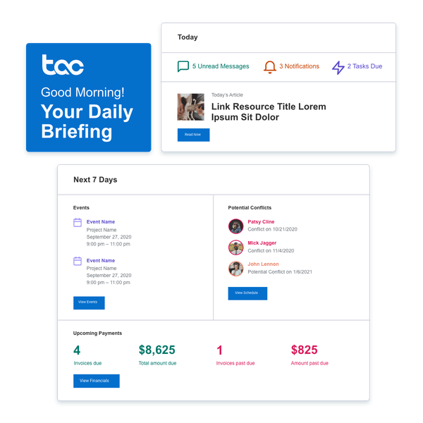 Find out what deserves your attention- and what doesn’t- over your first cup(s) of coffee. Team conflicts, delinquent payments, upcoming events and more will be delivered straight to your inbox every morning.